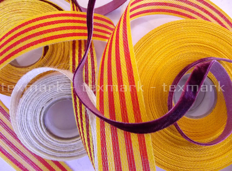 También fabricamos cintas con distintas combinaciones de colores y con inserciones en oro y plata, de todos los anchos (hasta 120 mm).
