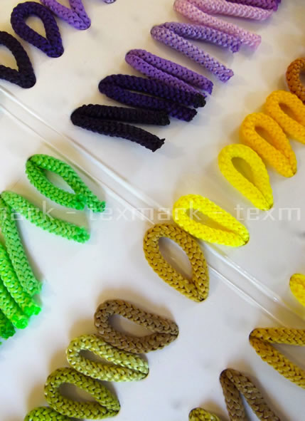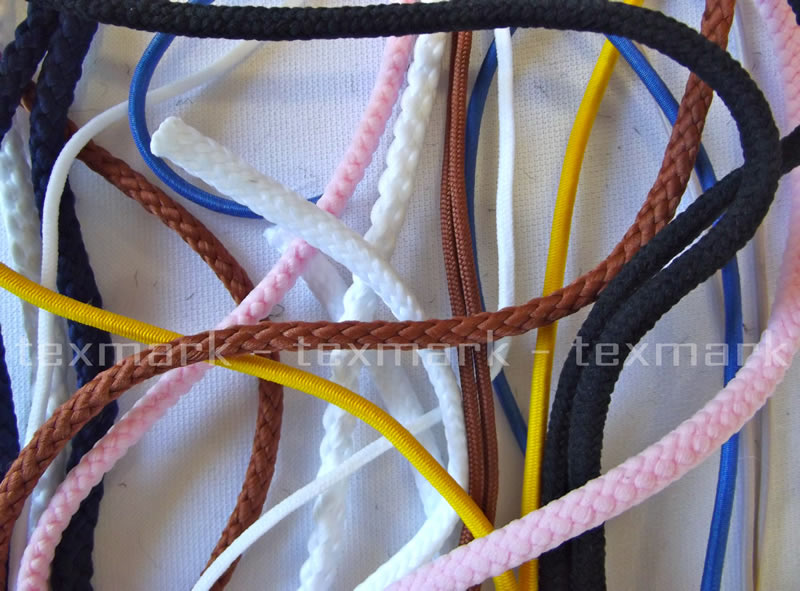 Nous avons cordons rigide et élastique pour tous les types d'applications, en polyester ou en coton, avec une variété de couleurs et d'épaisseurs de 1 à 10 mm. Nous fabriquons également des lacets fantaisie d'or et d'argent pour la décoration et l'emballage.