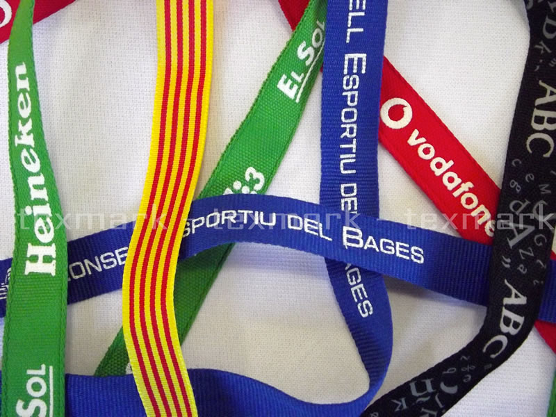 Cintes grosgrain personalitzades per a medalles, publicitat, laynards ... en amples de 3 a 50 mm.