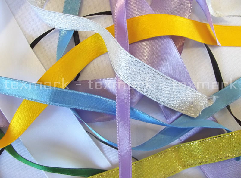 Disposem d'una gran varietat de colors (incloent or i plata). Són cintes que entre altres finalitats serveixen per a regals, publicitat, confecció, decoració ... Disponibles en amples de 3 a 50 mm.